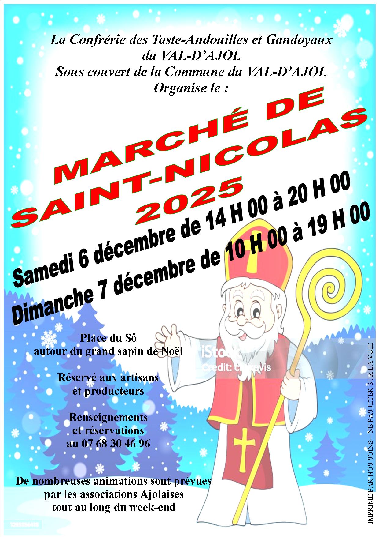 7 décembre – marché de 10h à 19h avec à partir de 17h le défilé de la St Nicolas organisé par le Comité des fêtes suivi d’un spectacle tout public à la SDF