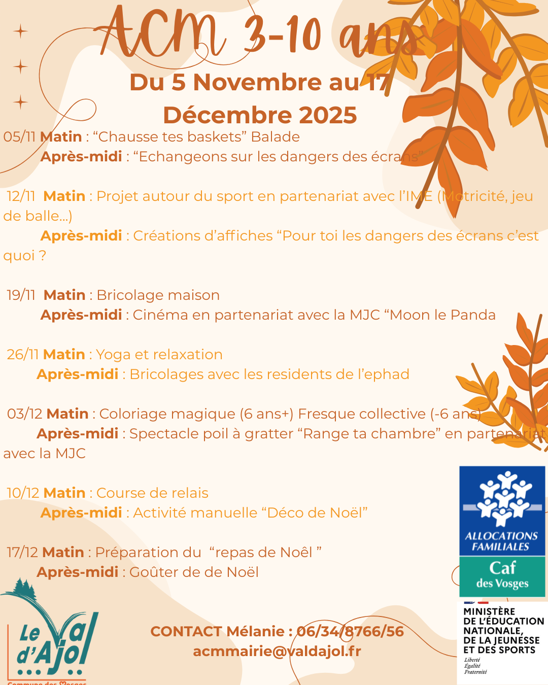 ou MÉLANIE 06/34/87/66/56 ou acmmairie@valdajol.fr