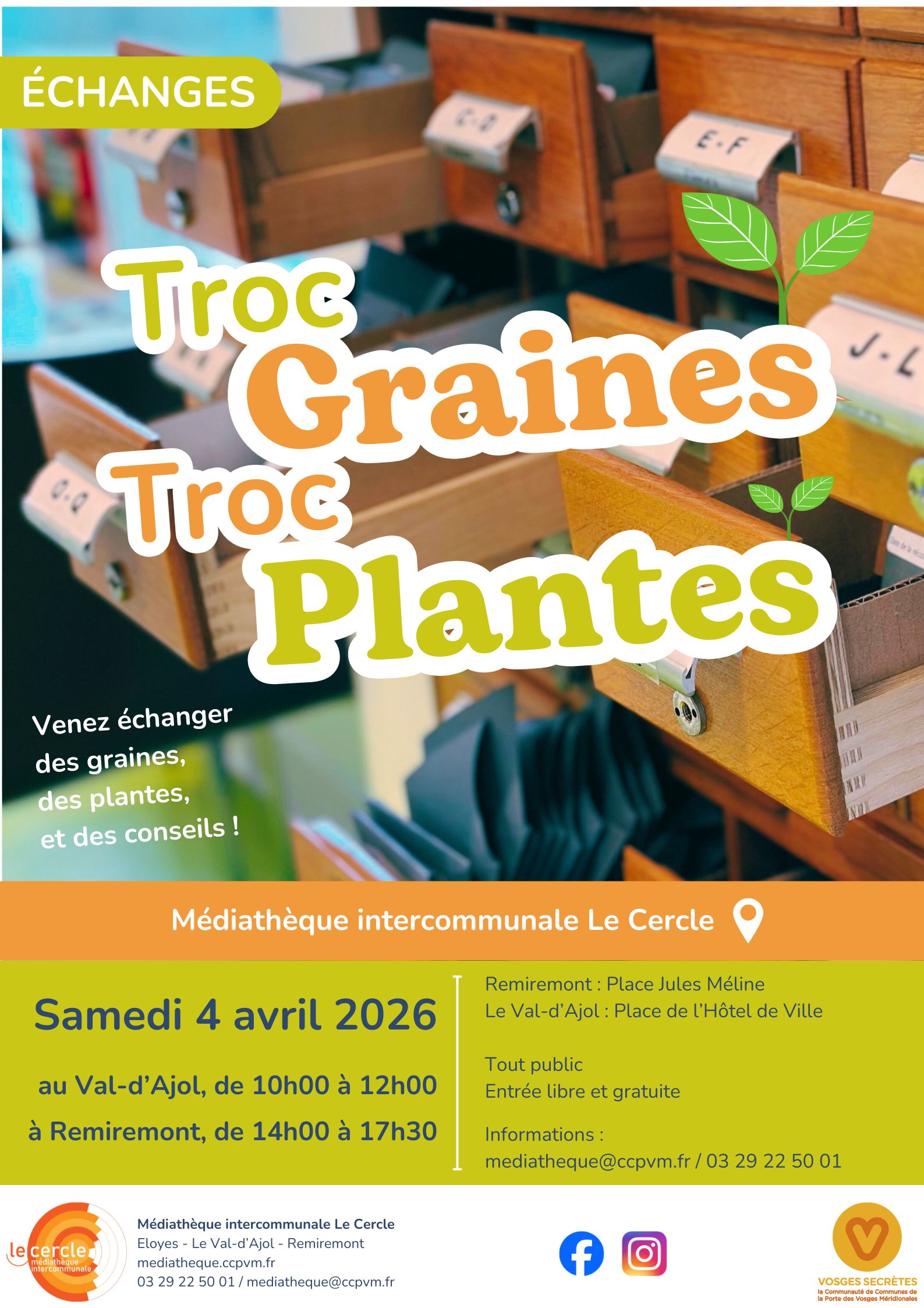 A l’occasion du printemps, la médiathèque organise un troc de semis de jardin et de plantes. Si vous possédez des semis en trop, des plantes d’intérieur ou d’extérieur à dédoubler, n’hésitez pas à les partager avec d’autres et profitez des variétés que vous n’avez pas !